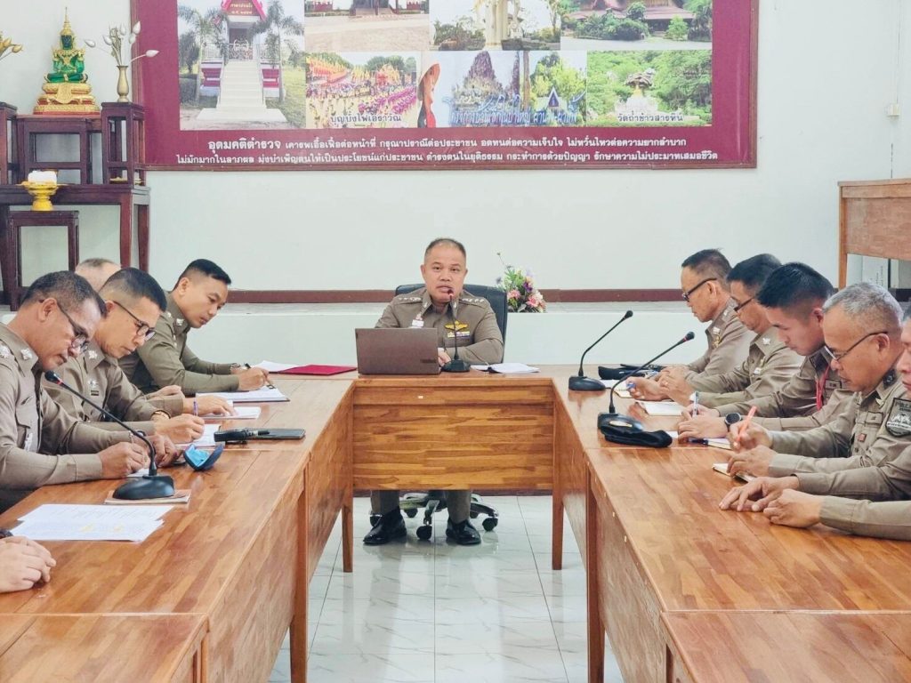 การประชุมชี้แจงของ ผกก.หัวหน้าสถานีให้หัวหน้าทุกสายงานเพื่อชี้แจงให้ตำรวจในสังกัดรับทราบ และร่วม ปฏิบัติตามมาตรการ/กิจกรรม พร้อมทั้งเตรียมความพร้อมในการรับการตรวจสอบประจำปีงบประมาณ2567 วันที่ 20 ธ.ค.๖๖ ณ ห้องประชุม สภ.เอราวัณ