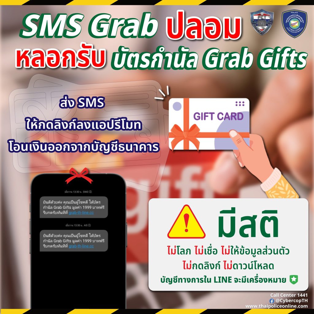 ๑) SMS Grab ปลอมหลอกรับบัตรกำนัล Grab Gifts