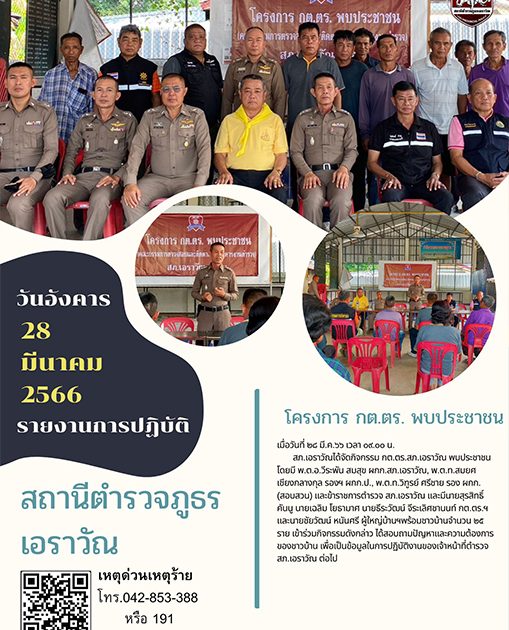 โครงการ กต.ตร. พบประชาชน 15 กันยายน 2565 โดย admin / ข่าวภารกิจผู้บังคับบัญชา FacebookFacebookXXLINELine