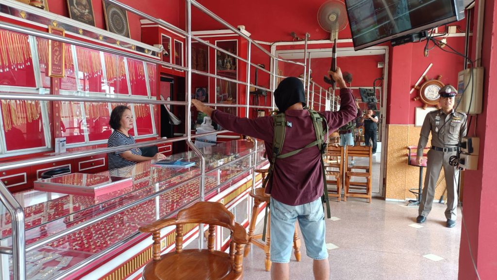 พ.ต.ต.กิตติพันธ์ กำจรวัชรศักดิ์ สวป.ฯ ควบคุมการปฏิบัติการซักซ้อมแผนเผชิญเหตุรักษาความปลอดภัยคนร้ายประทุษร้ายต่อ ธนาคาร ร้านทอง ร้านสะดวกซื้อ ปั๊มน้ำมัน ตู้เอทีเอ็ม และอาชญากรรรม จำลองเหตุการณ์ คนร้ายก่อเหตุร้านทองเยาวราช เพื่อเพิ่มประสิทธิภาพการปฏิบัติของชุดปฏิบัติการ สภ.เอราวัณ ทุกชุด