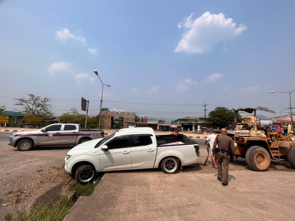 โดยการอำนวยการของ พ.ต.อ.วีระพัน สมสุข ผกก.สภ.เอราวัณ , พ.ต.ท.สมยศ เชียงกางกุล รอง ผกก.ป.ฯ , พ.ต.ท.วิมล นามป้อง รอง ผกก.สส.ฯ , พ.ต.ท.วิฑูรย์ ศรีชาย รอง ผกก.(สอบสวน)ฯ , พ.ต.ต.อิทธิพล บุษบา สวป.ฯ มอบหมายให้ ร.ต.อ.สมศักดิ์ เสียงล้ำ รอง สว(ป.)ฯ ปฏิบัติหน้าที่ร้อยเวร 2-0 พร้อม ข้าราชการตำรวจ สถานีตำรวจภูธรเอราวัณ เข้าช่วยเหลือรถยนต์ประชาชน เดินทางกลับบ้านช่วงสงกรานต์ ปี 2566 ตกร่องน้ำข้างทาง โดยนำรถมาลากขึ้น เพื่อให้สามารถเดินทางต่อได้