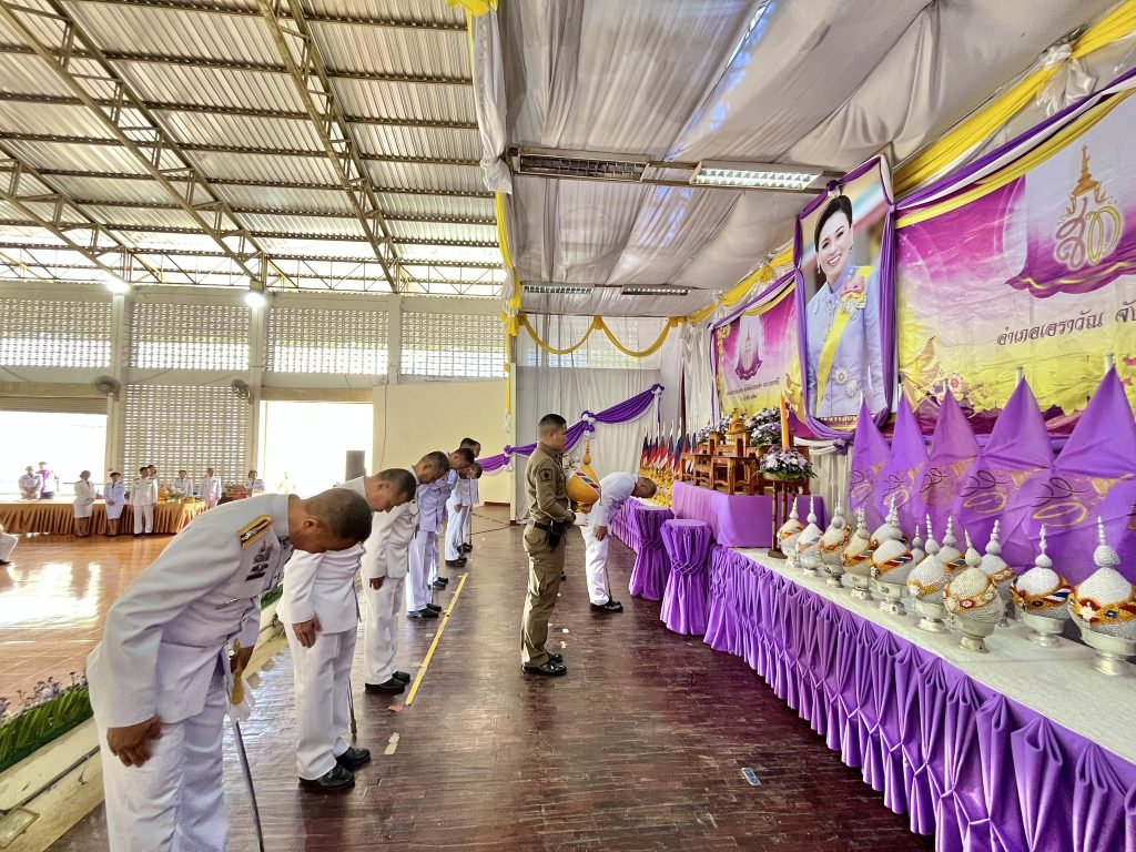 พ.ต.ต.กิตติพันธ์ กำจรวัชรศักดิ์ สวป.ฯ พร้อมข้าราชการตำรวจ สภ.เอราวัณ เข้าร่วม กิจกรรมวันเฉลิมพระชนมพรรษา สมเด็จพระนางเจ้าฯพระบรมราชินี 3 มิถุนายน 2568 ณ ที่ว่าการอำเภอเอราวัณ