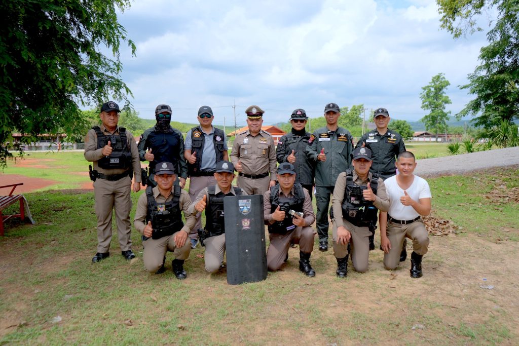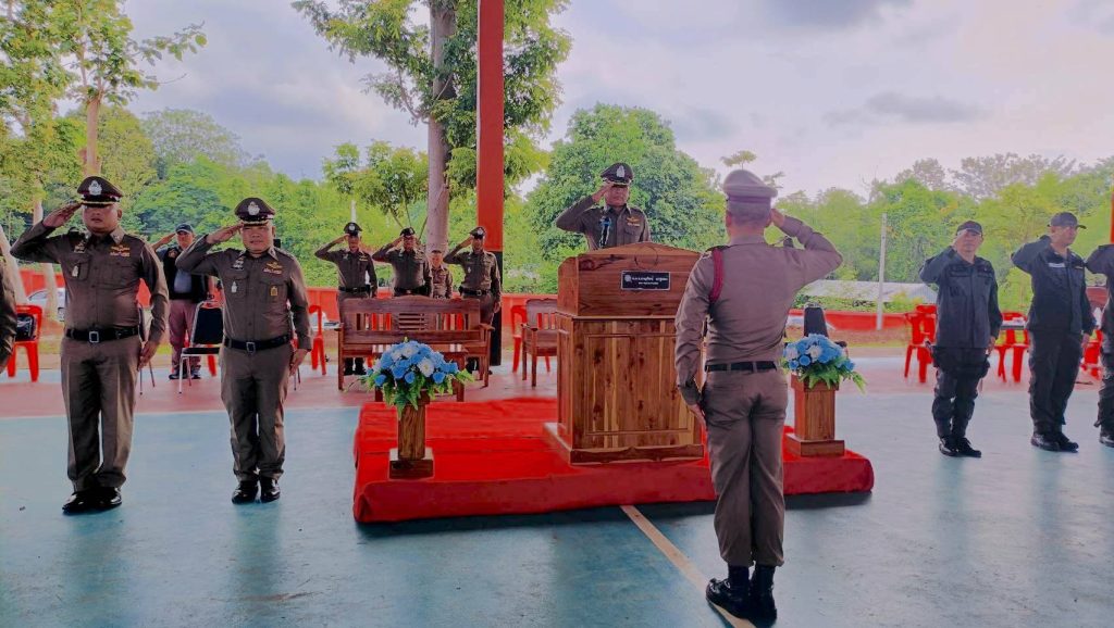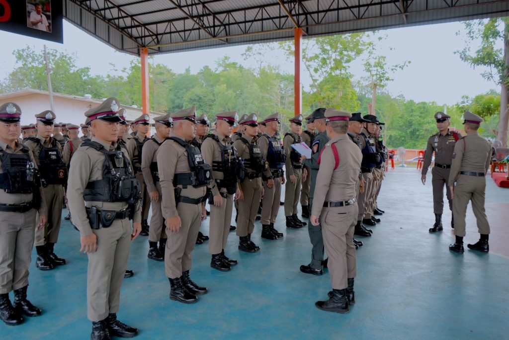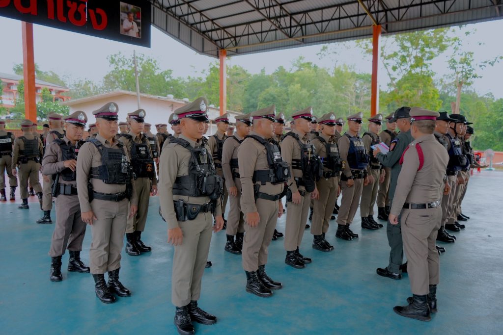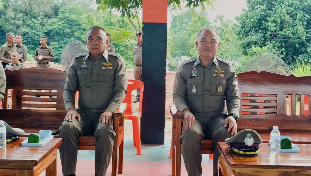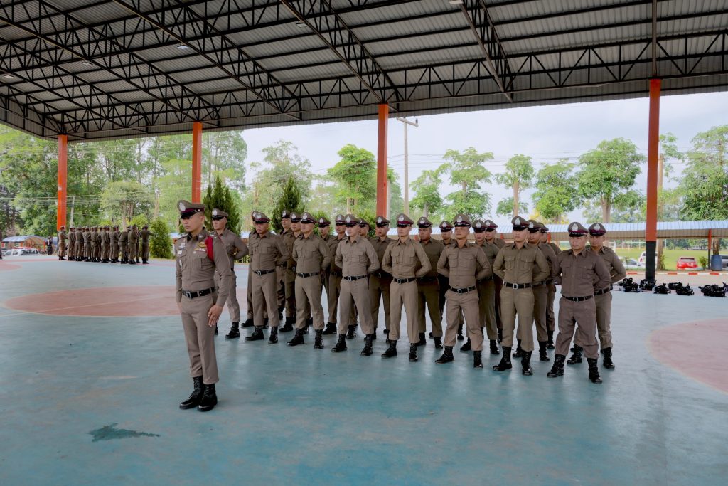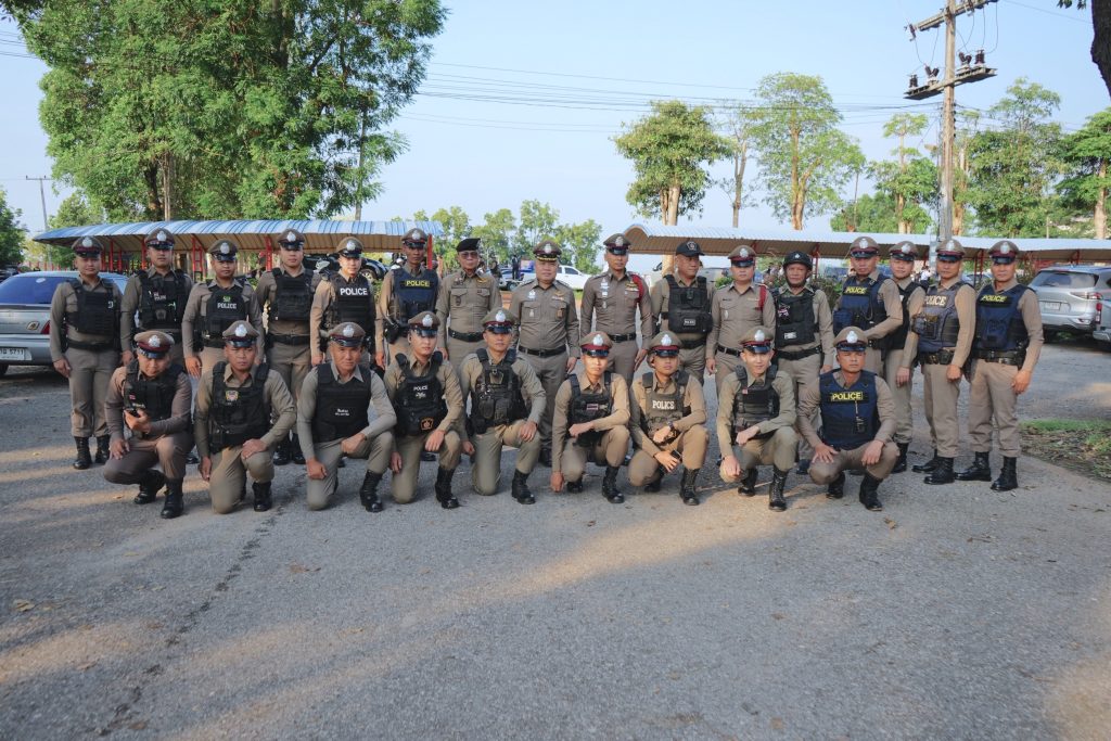พ.ต.อ.ชนาธิป ภาโนมัย ผกกฯ พ.ต.ท.จิรโรจน์ ภูภัทรจินดา รอง ผกก.ปฯ พ.ต.ท.กฤศณัฏฐ์ พิมกิรติ รอง ผกก. สสฯ พ.ต.ต.กิตติพันธ์ กำจรวัชรศักดิ์ สว.ปฯ พร้อมด้วยข้าราชการตำรวจ สภ.เอราวัณ