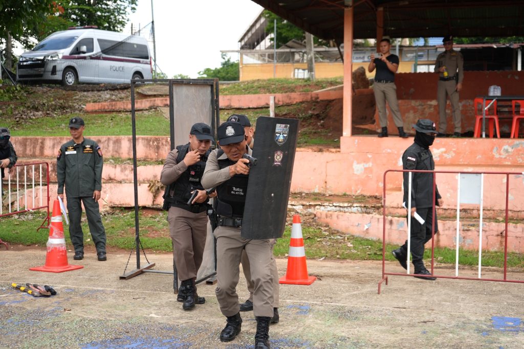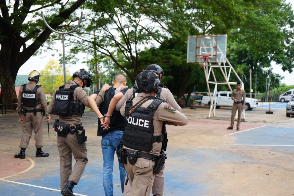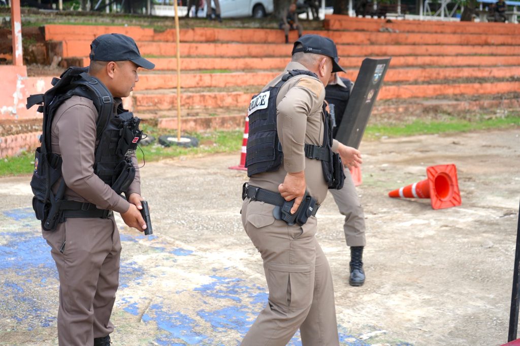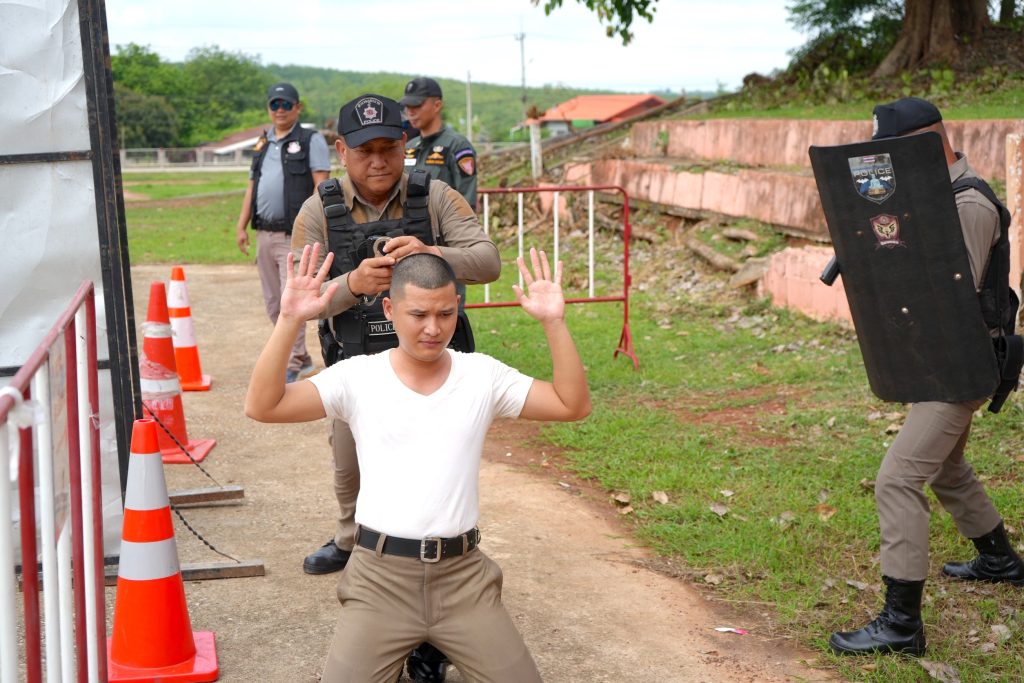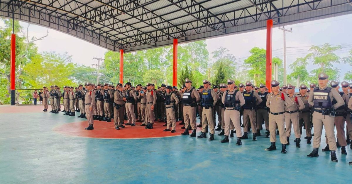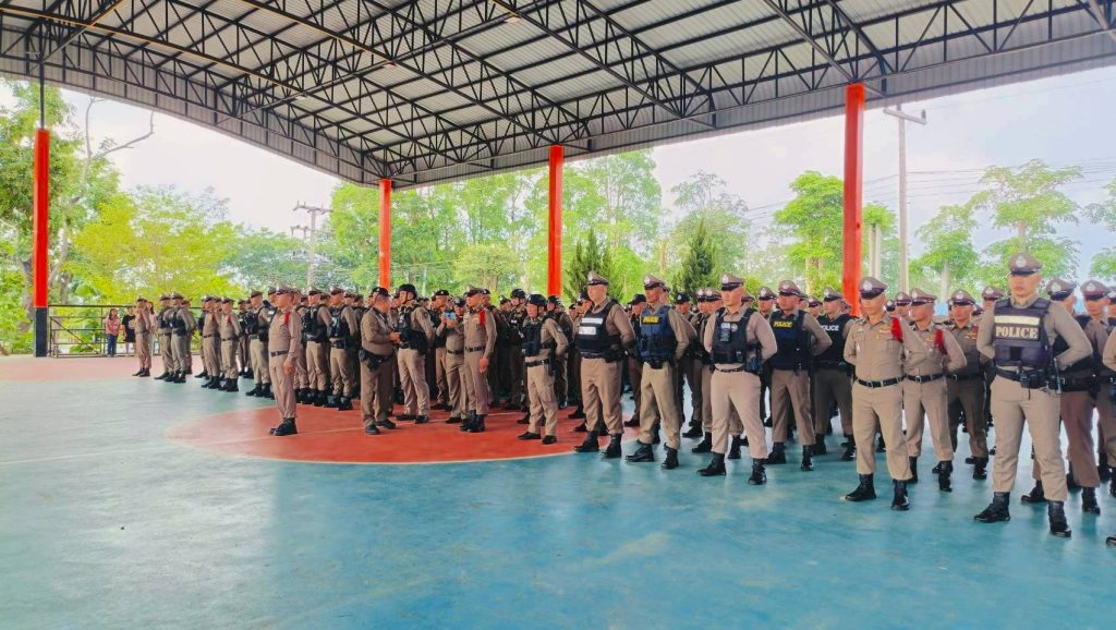 พ.ต.อ.ชนาธิป ภาโนมัย ผกกฯ พ.ต.ท.จิรโรจน์ ภูภัทรจินดา รอง ผกก.ปฯ พ.ต.ท.กฤศณัฏฐ์ พิมกิรติ รอง ผกก. สสฯ พ.ต.ต.กิตติพันธ์ กำจรวัชรศักดิ์ สว.ปฯ พร้อมด้วยข้าราชการตำรวจ สภ.เอราวัณ