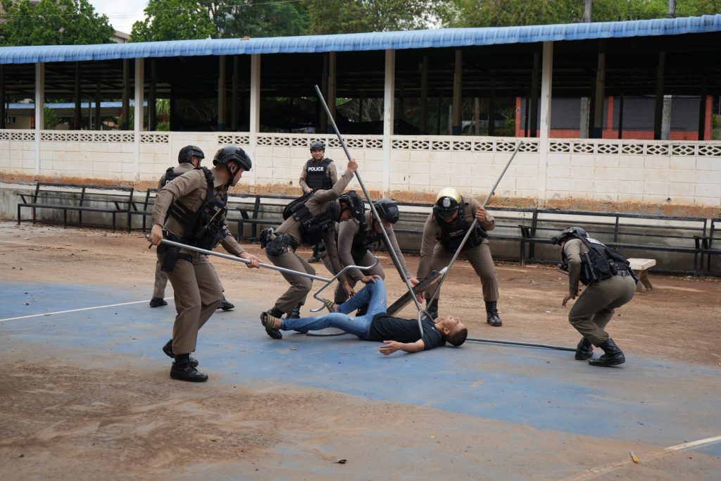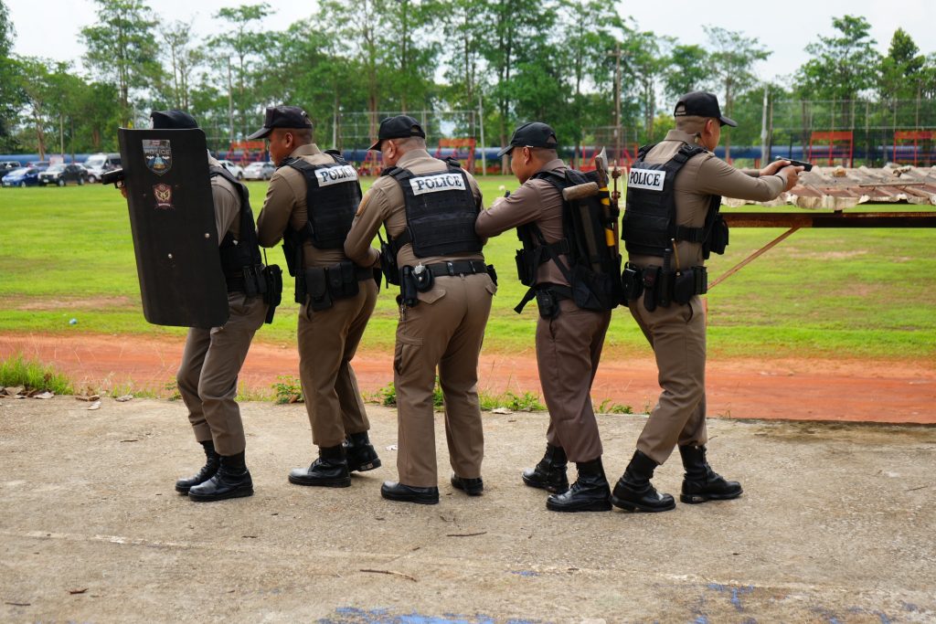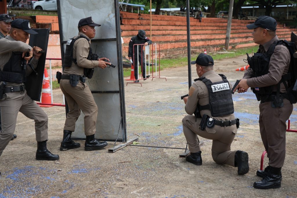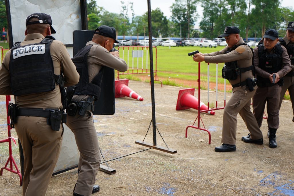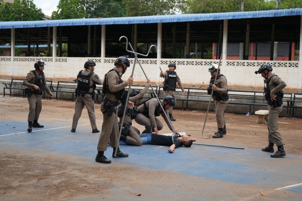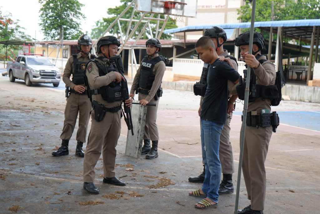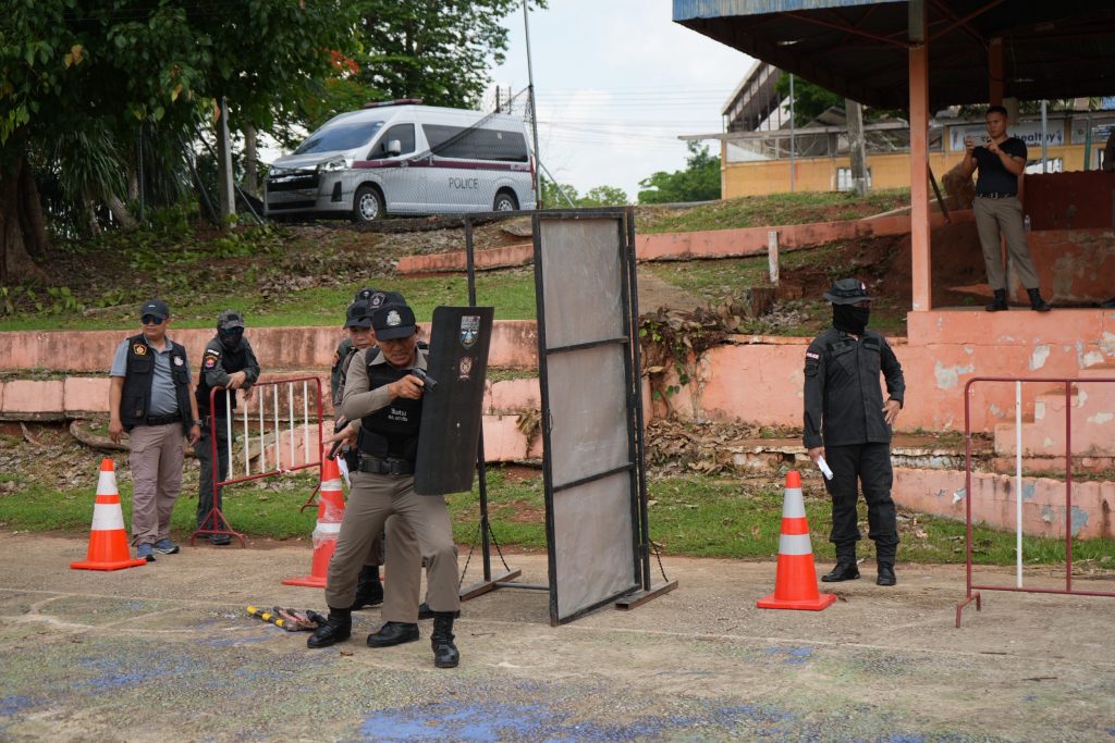 พ.ต.อ.ชนาธิป ภาโนมัย ผกกฯ พ.ต.ท.จิรโรจน์ ภูภัทรจินดา รอง ผกก.ปฯ พ.ต.ท.กฤศณัฏฐ์ พิมกิรติ รอง ผกก. สสฯ พ.ต.ต.กิตติพันธ์ กำจรวัชรศักดิ์ สว.ปฯ พร้อมด้วยข้าราชการตำรวจ สภ.เอราวัณ