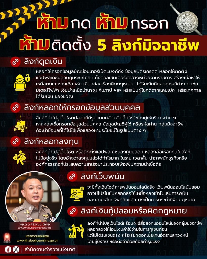 ห้าม กด ห้าม กรอก ห้าม ติดตั้ง 5 ลิงก์มิจฉาชีพ