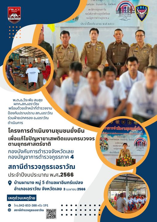 วันนนี้ วันที่ 11 เม.ย. 66 เวลา 08.30 น. นำโดย พ.ต.อ.วีระพัน สมสุข ผกก.สภ.เอราวัณ ,พ.ต.ท.สมยศ เชียงก