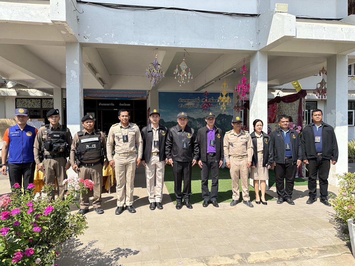 เจ้าหน้าที่ตำรวจ ร้อยเวร 20 สายตรวจรถยนต์ พร้อมฝ่ายปกครองอำเภอเอราวัณและ พสน.กระทรวงศึกษาธิการ ออกตร