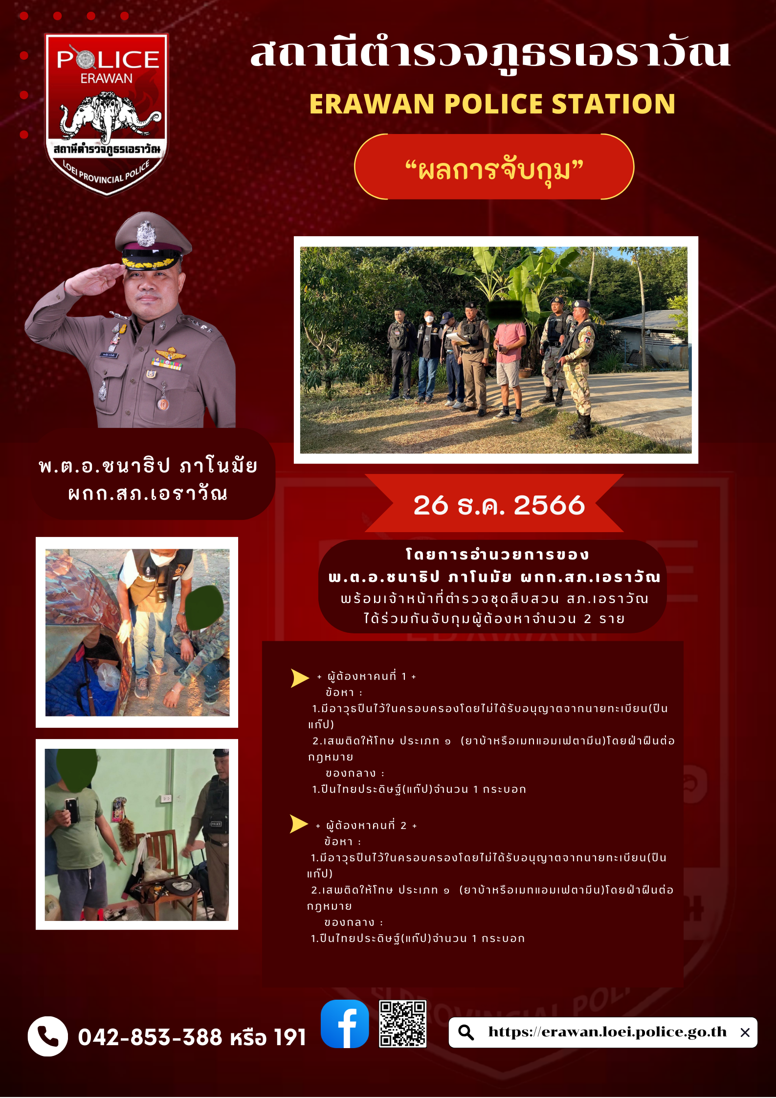 โดยการอำนวยการของ พ.ต.อ.วีระพัน สมสุข ผกก.สภ.เอราวัณ , พ.ต.ท.สมยศ เชียงกางกุล รอง ผกก.ป.ฯ , พ.ต.ท.วิ