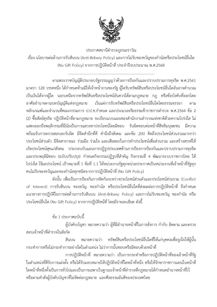 ประกาศคำสั่งสถานีตำรวจภูธรภูเอราวัณ-เรื่อง-นโยบายต่อต้านการรับสินบน ประกาศคำสั่งสถานีตำรวจภูธรภูเวียง-เรื่อง-นโยบายต่อต้านการรับสินบน-ฉบับแปล-1
