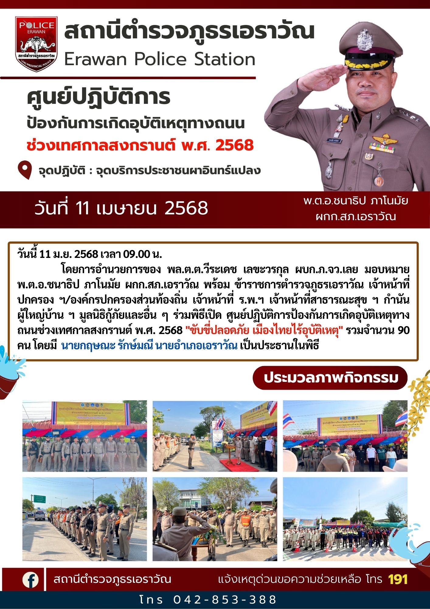 สภ.เอราวัณ วันที่ (11 เม.ย. 2568) เวลา 09.00 น. โดยการอำนวยการของ พล.ต.ต.วีระเดช